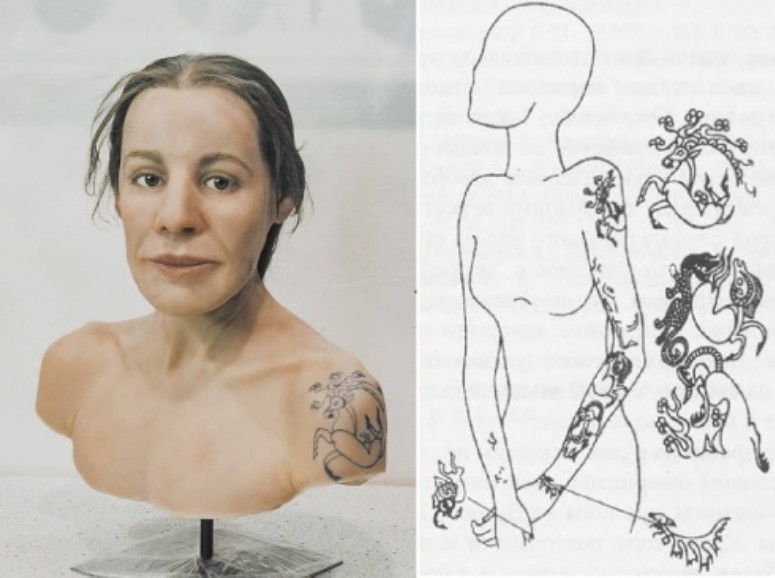 Кроме того, на коже принцессы Укока, как ее назвали, сохранились необычные татуировки. Современные технологии позволили воссоздать ее облик. Исследователи продолжают искать ответы на связанные с находкой вопросы.