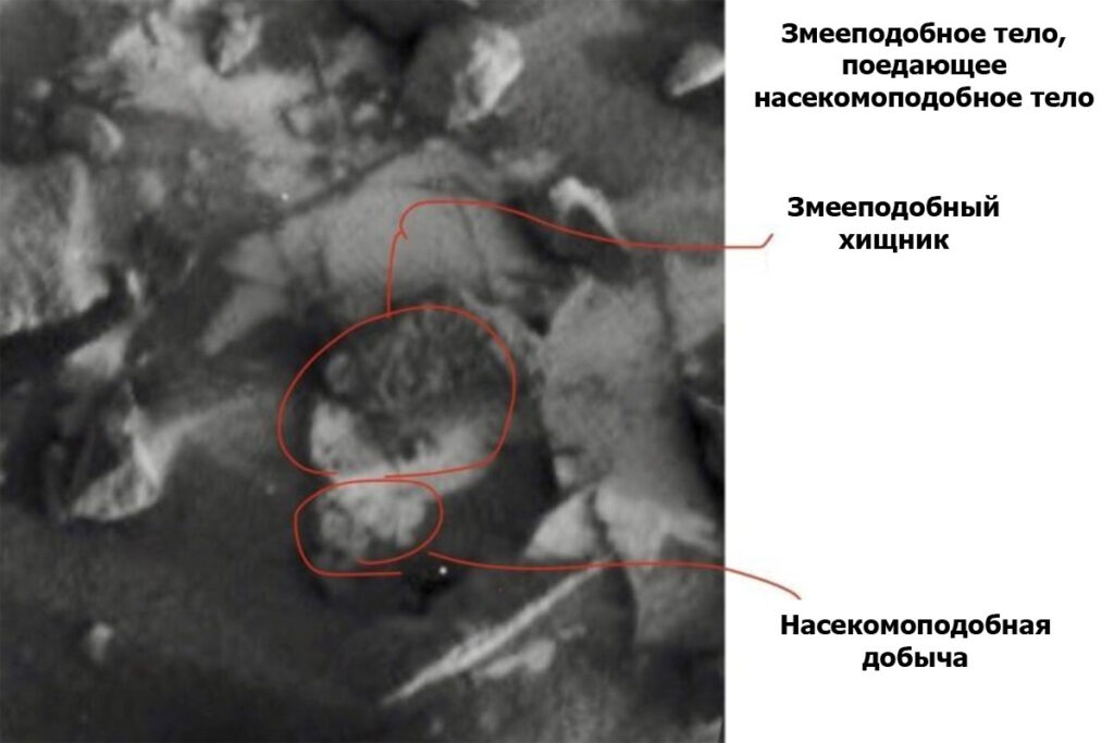 Ученый с 45-летним стажем увидел живность на фото, снятых марсоходом Curiosity, которые NASA выкладывает в открытый доступ. Ромозер считает, что Красная планета населена гигантскими насекомыми. По его словам, их можно разглядеть в объектах, заметно отличающихся от окружающей обстановки четкой симметрией и сегментацией. Причем на фотографиях есть и живые тела, и окаменелости, а по их форме и положению можно предположить, что они умеют не только ползать, но и летать.