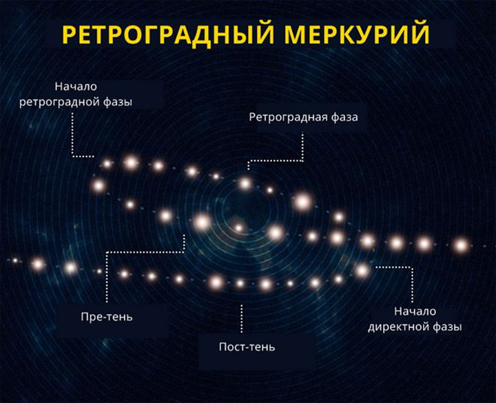 Ретроградным называют обратное движение планеты по небу, наблюдаемое с Земли. С Меркурием такое происходит три-четыре раза в год.