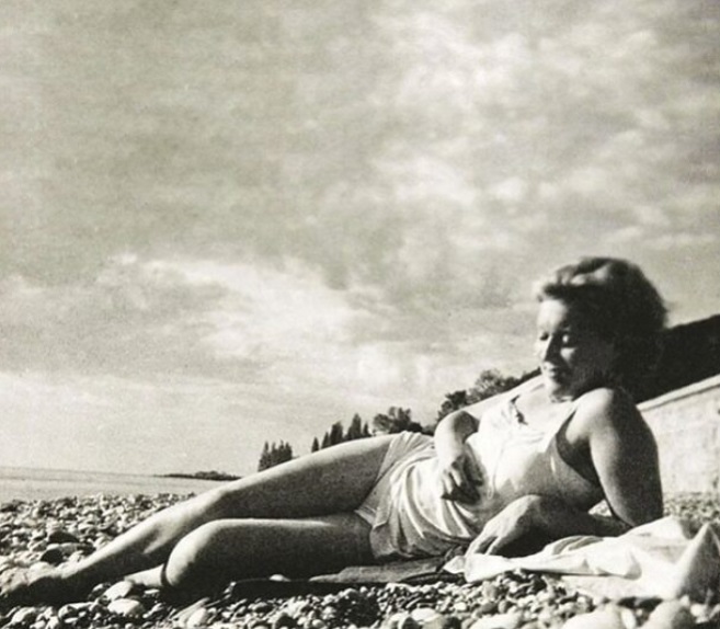 Фото 1931 года – Любовь Орлова отдыхает от съемок «Веселых ребят» на пляже Гагры.