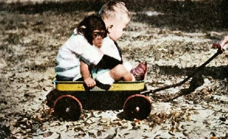 Психолог Уинтроп Келлог решил поставить эксперимент на своем сыне. Он воспитывал мальчика вместе с шимпанзе, как брата и сестру. Мужчина полагал, что шимпанзе очеловечится, станет говорить. Однако исследование психолога чуть было не навредило здоровью его сына.