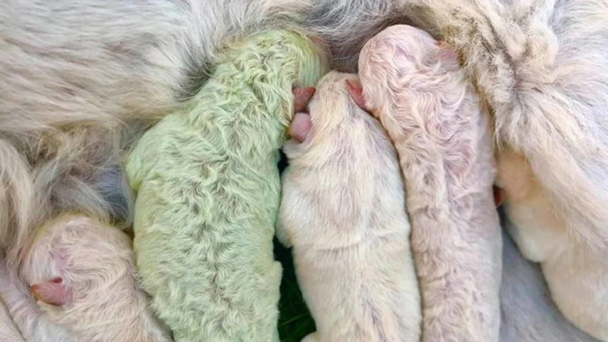 По словам Марка, щенок оказался не просто зеленоватым, а ярко-зеленым. Мужчина никогда не видел подобного и обратился к ветеринару. Но доктор только развел руками, так как никогда не встречался с такими случаями.